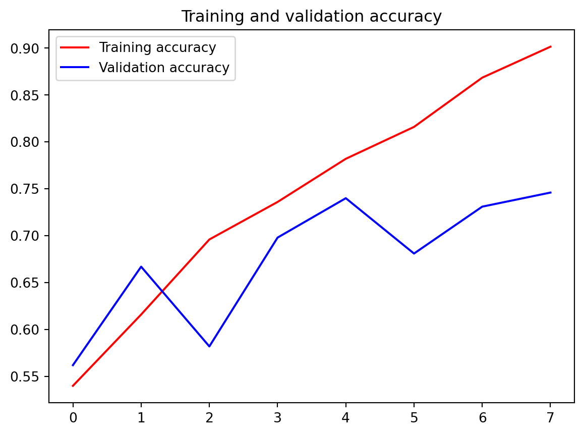 ┏━━━━━━━━━━━━━━━━━━━━━━━━━━━━━━━━━┳━━━━━━━━━━━━━━━━━━━━━━━━┳━━━━━━━━━━━━━━━┓ ┃ Layer (type) ┃ Output Shape ┃ Param # ┃ ┡━━━━━━━━━━━━━━━━━━━━━━━━━━━━━━━━━╇━━━━━━━━━━━━━━━━━━━━━━━━╇━━━━━━━━━━━━━━━┩ │ conv2d (Conv2D) │ (None, 148, 148, 16) │ 448 │ ├─────────────────────────────────┼────────────────────────┼───────────────┤ │ max_pooling2d (MaxPooling2D) │ (None, 74, 74, 16) │ 0 │ ├─────────────────────────────────┼────────────────────────┼───────────────┤ │ conv2d_1 (Conv2D) │ (None, 72, 72, 32) │ 4,640 │ ├─────────────────────────────────┼────────────────────────┼───────────────┤ │ max_pooling2d_1 (MaxPooling2D) │ (None, 36, 36, 32) │ 0 │ ├─────────────────────────────────┼────────────────────────┼───────────────┤ │ conv2d_2 (Conv2D) │ (None, 34, 34, 64) │ 18,496 │ ├─────────────────────────────────┼────────────────────────┼───────────────┤ │ max_pooling2d_2 (MaxPooling2D) │ (None, 17, 17, 64) │ 0 │ ├─────────────────────────────────┼────────────────────────┼───────────────┤ │ flatten (Flatten) │ (None, 18496) │ 0 │ ├─────────────────────────────────┼────────────────────────┼───────────────┤ │ dense (Dense) │ (None, 512) │ 9,470,464 │ ├─────────────────────────────────┼────────────────────────┼───────────────┤ │ dense_1 (Dense) │ (None, 1) │ 513 │ └─────────────────────────────────┴────────────────────────┴───────────────┘