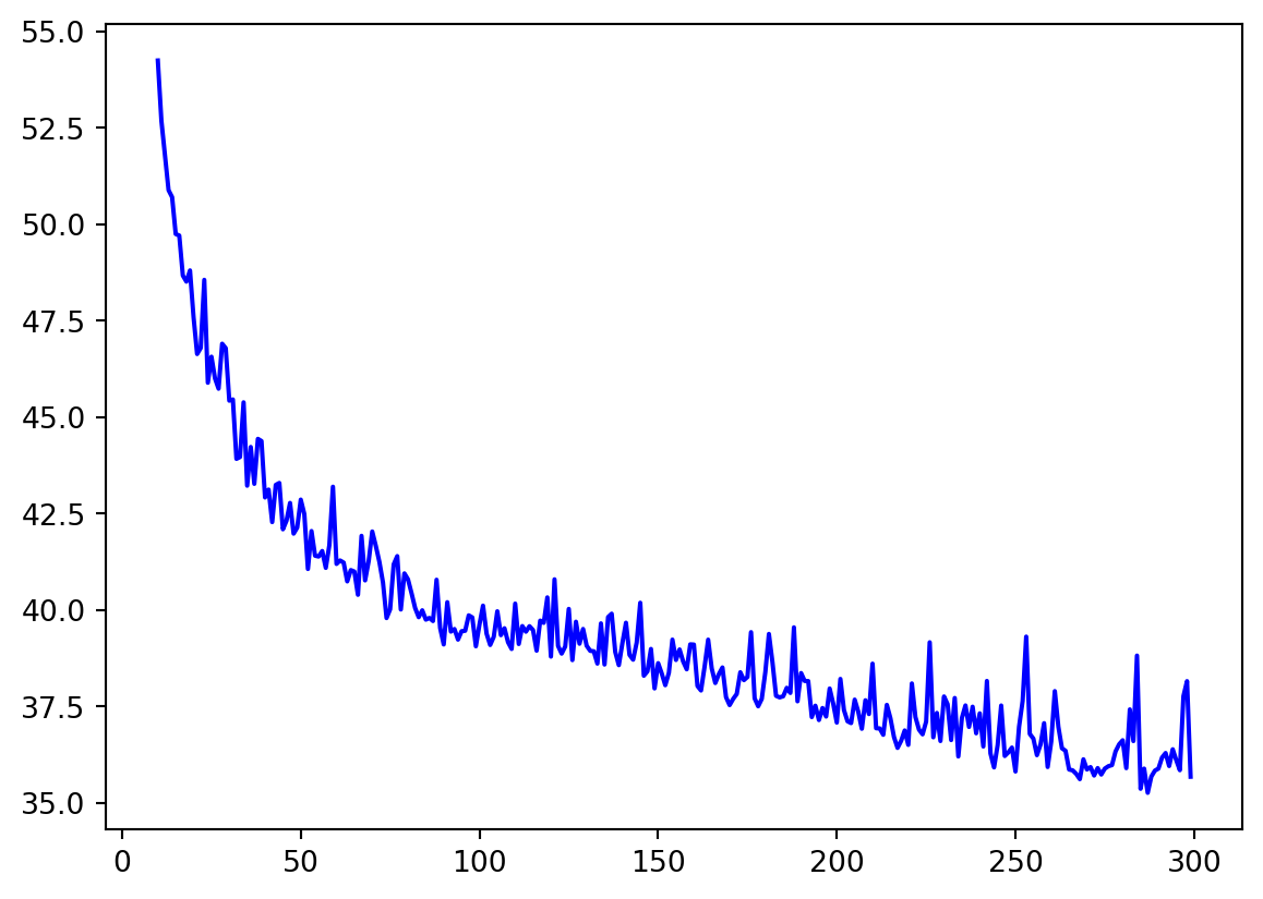 plt.plot(epochs, plot_loss, 'b', label='Training Loss')